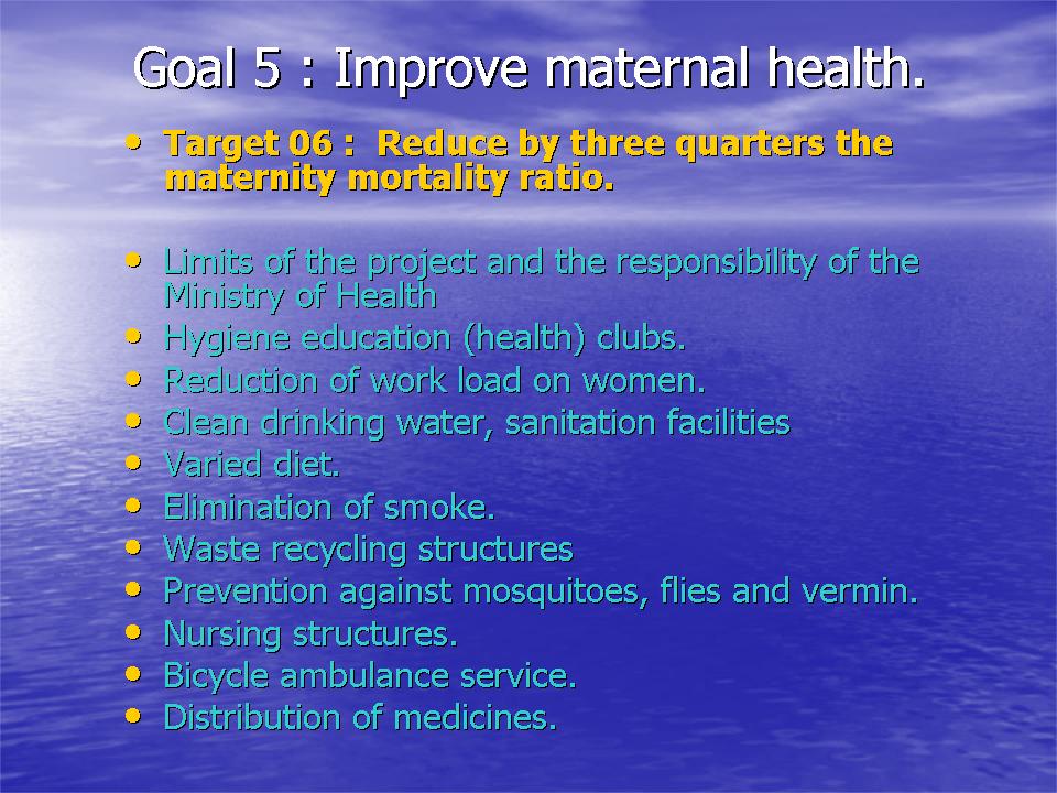 Millennium goal 5 (Target 06) read :
