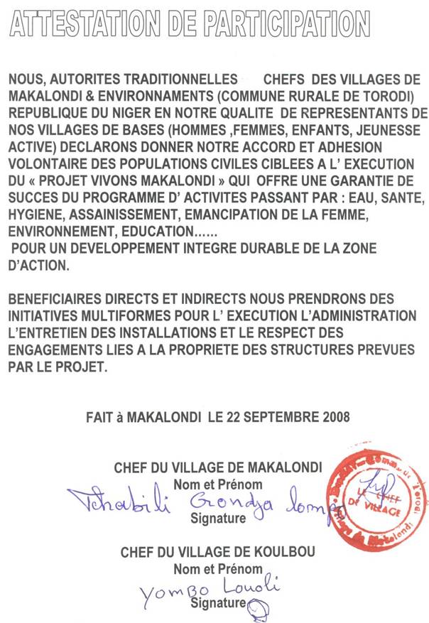 principal du projet Makalondi.