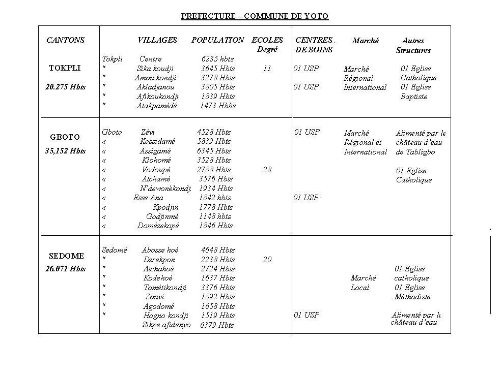 Données sur la zone du projet (Cantons de Sédomé, Gboto, et Tokpli) |